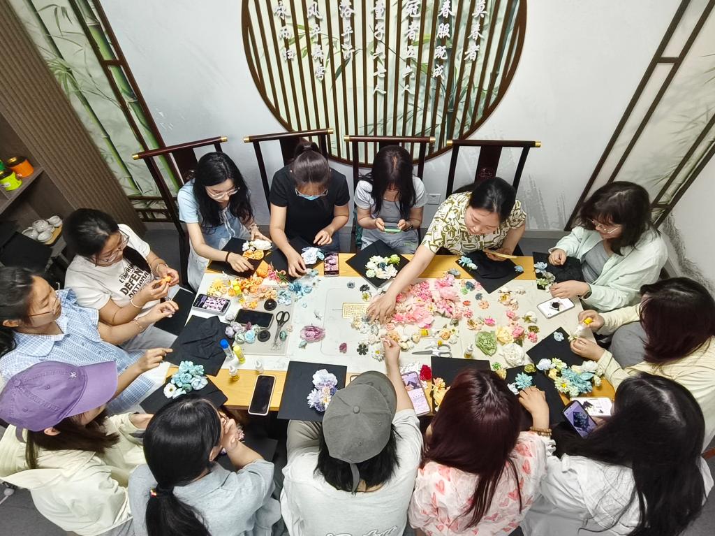 6月17日,计算机科学与工程学院在“一站式”学生社区举办“头戴簪花,一路生花”学士帽DIY活动。