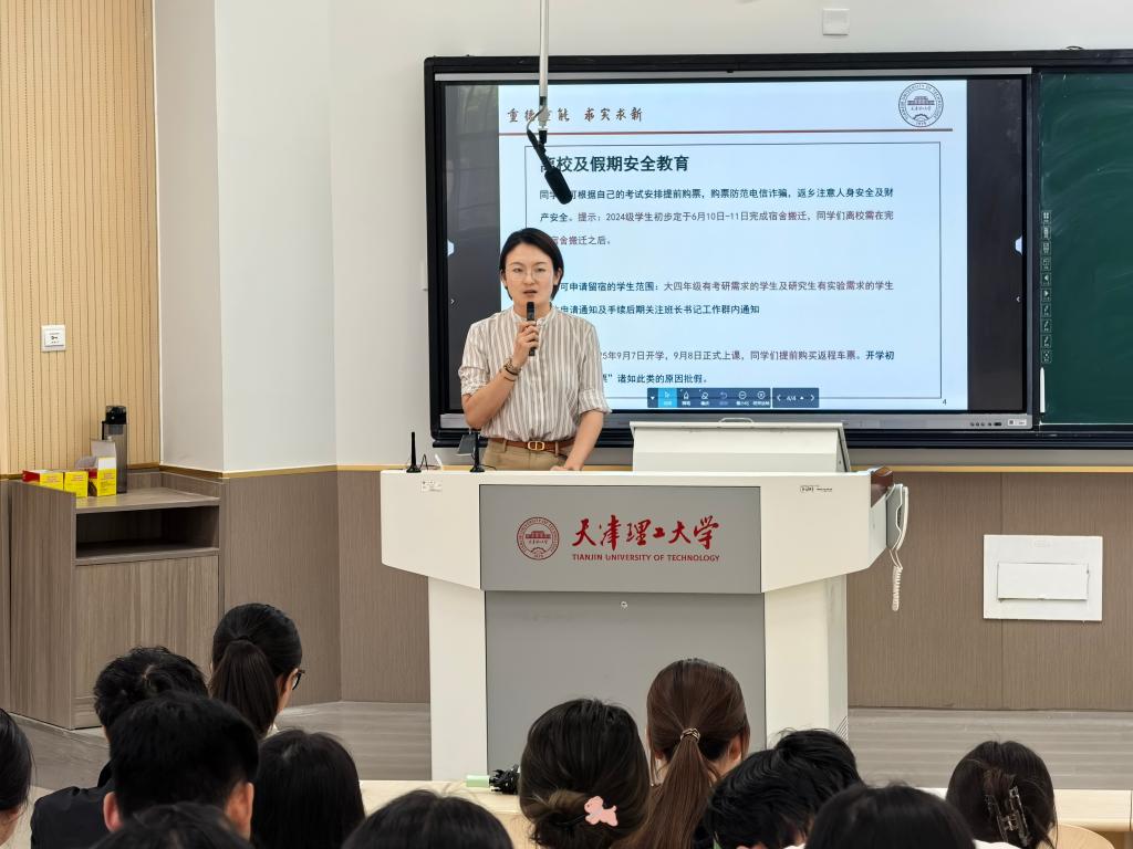 随后,学院辅导员代表围绕考场违纪的严重后果、宿舍安全隐患以及暑期留宿等事宜进行详细解读,引导全体学生骨干及时传达教育内容,在全院范围内营造风清气正的考场环境,织密防诈安全网。
