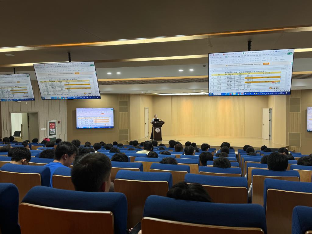 学院党委相关负责同志结合近三年理学院考研情况,为全体计划考研的毕业生进行宣讲。她希望同学们能够正确认识自身的学习能力,结合长远的生涯规划,做好目标院校及专业选择。她从近三年学院毕业生高质量就业出发,引导全体毕业生把握招聘期,尽快完善个人简历,做好求职准备。