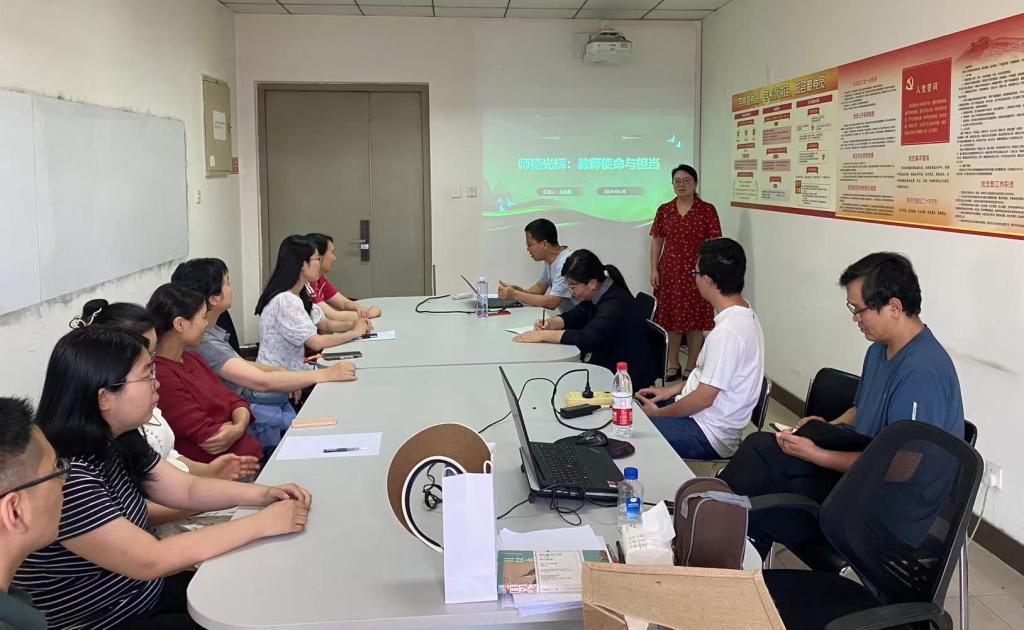 吴晨晨以《教师使命与担当》为题,在应用数学教师党支部作师德宣讲,带领广大教师党员一起学习新时代高校教师职业行为十项准则,引领大家要规范职业行为,明确师德底线,在传授专业知识上、培养学生品德上、激发学生潜力上下功夫,切实肩负起促进教育事业发展、推动社会进步的使命与责任。
