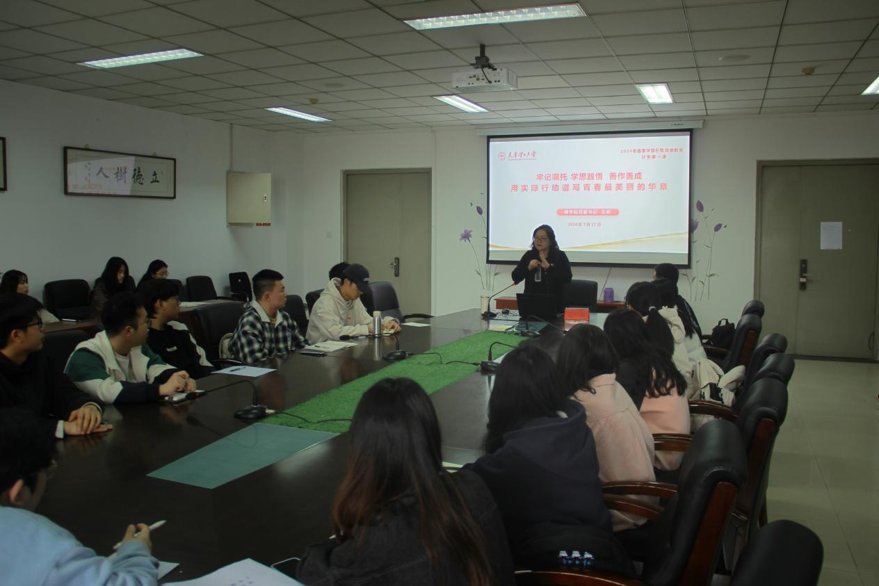 学院党委主要负责同志讲授题为“牢记嘱托 学思践悟 善作善成 用实际行动谱写青春最美丽的华章”的主题党课,带领学生党员和入党积极分子共同学习领会习近平总书记视察天津重要讲话精神,学习贯彻习近平文化思想,勉励学生们要牢记嘱托,自觉践行“四个善作善成”的重要要求,传承“重德重能、求实求新”校训精神,做挺膺担当的新时代米兰人,为推动强国建设、民族复兴伟业贡献青春力量。