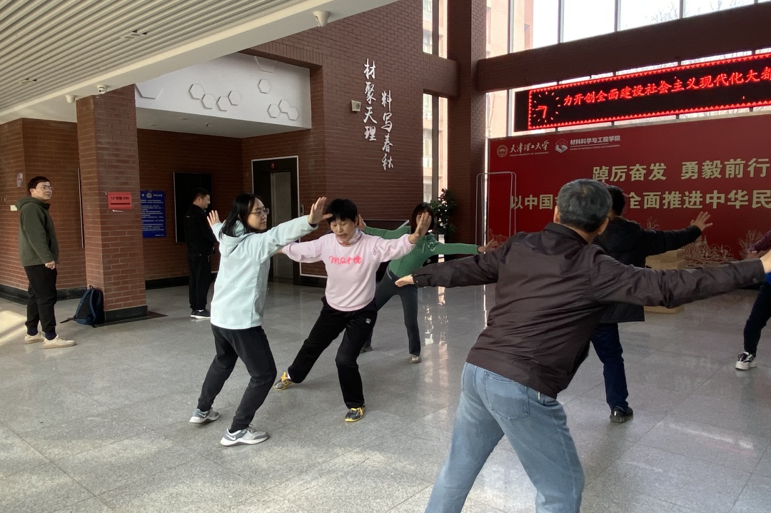 近日,材料科学与工程学院党委联合体育教学部党总支联合开展了教职工工间操系列培训活动,邀请体育教学部党支部书记李红艳指导教职工练习太极拳、八段锦等。