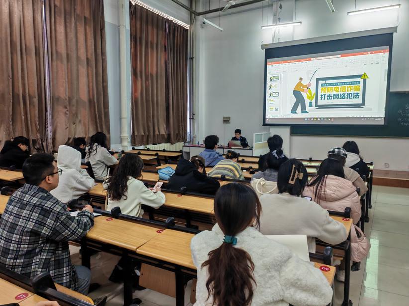 学苑派出所民警为学生详细讲解了电信诈骗的特点和趋势,介绍了近期常见的电信诈骗手段和识别方法,通报了典型电信诈骗案例,以案说法、以警示人,深入浅出地普及防范电信网络诈骗安全常识,让学生增强反诈意识,提高警惕,避免上当受骗。