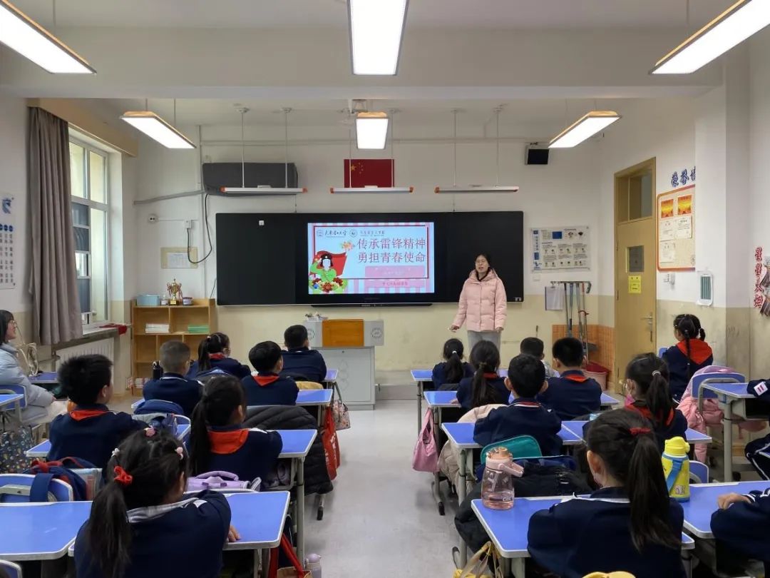 在鞍山道小学,志愿者与小学生们共同参加升国旗仪式,并以“传承雷锋精神,奉献青春力量”为题进行国旗下演讲,呼吁青少年积极弘扬雷锋精神,从身边小事做起,用实实在在的行动向雷锋同志学习,做新时代优秀少先队员。