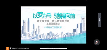 21级社会学1班和2班团支部邀请2022届毕业生作经验分享。她分享了考编方面的经验,介绍了不同事业单位的要求及区别,建议大家努力学习、广泛参与实践,不断提高个人实力、丰富自己履历。在实习实践方面,她建议同学们寻求专业实习机会,利用好寒暑假锻炼自己各方面的能力。此外,她还在简历制作方面为大家提出了相关建议,并鼓励大家尽早做好秋招和春招的准备。