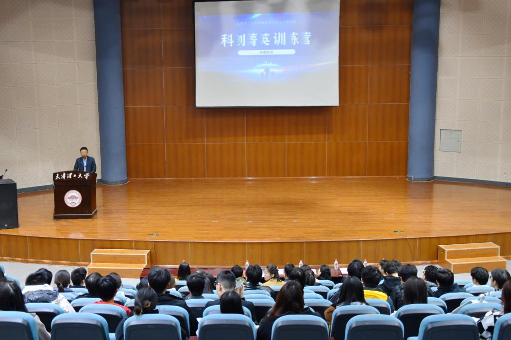 随后,学院相关教师回顾了2018-2022年科技创新工作开展情况,介绍了学院师生在科创领域取得的优异成绩。学院相关负责人介绍了首届科创菁英训练营训练方案,她表示,学院将依托天津市重点实验室,多形式开展包括“创新思维培养”“科创团队构建”“计划书撰写交流”“路演展示技能提升”“科技竞赛创新实践”五大模块的科创能力训练,推动科创育人工作走深走实。