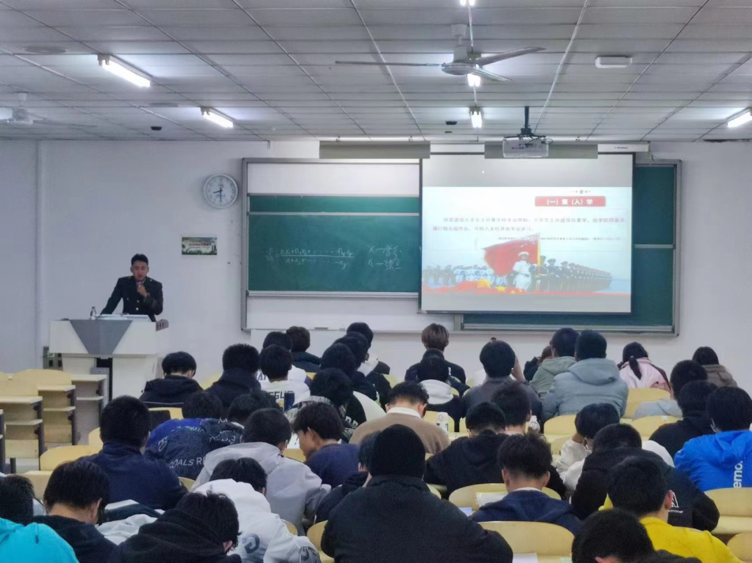 学院退役复学大学生代表针对入伍政策和军营生活进行了分享。他围绕大学生参军优惠政策、入伍条件、入伍基本流程等方面向同学们作了介绍,还结合实际情况重点讲解了退役大学生士兵考研专项计划与就业优待政策,同时,还分享了自己的军旅故事。他表示,军队生活虽然艰苦,但强健了体魄,磨炼了意志,获得深厚的战友情。他鼓励同学们积极参军入伍,为国防事业贡献力量。宣讲会后,同学们进行了互动交流。