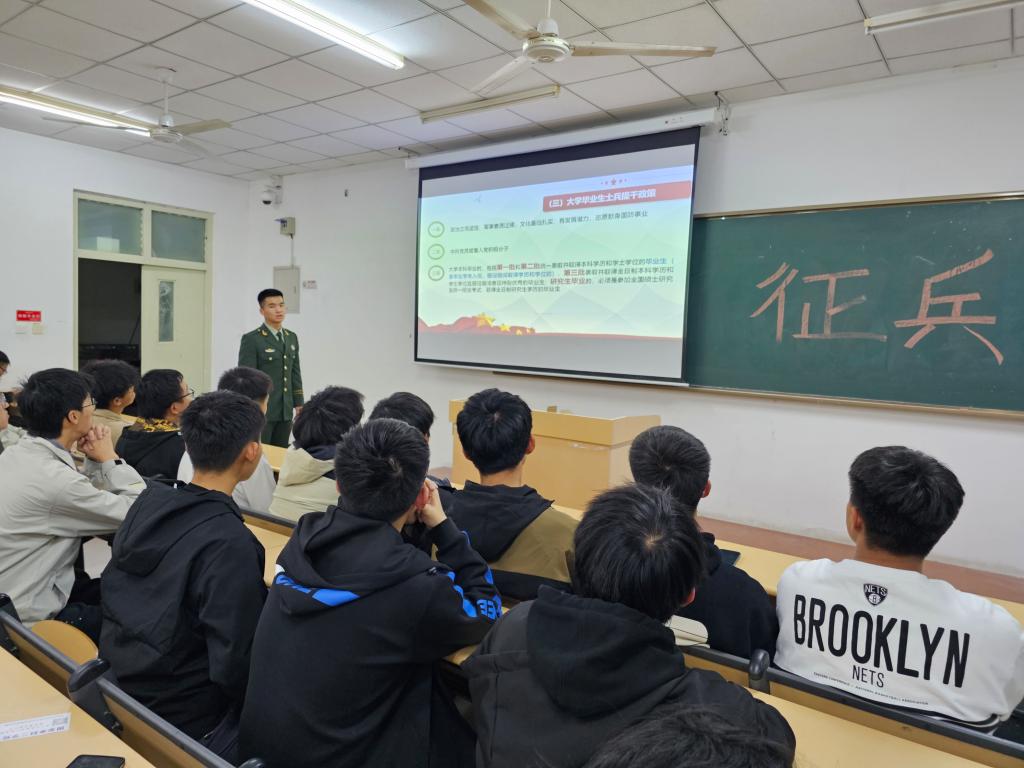 近日,环境科学与安全工程学院召开2024年上半年征兵工作宣讲会,辅导员、退役复学大学生代表向参会学生进行征兵政策宣讲。