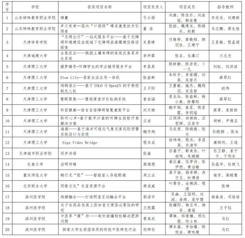 第二届全国残疾大学生创新创业竞赛科技创新和未来产业组晋级决赛名单
