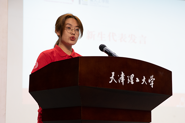 2023级新生代表冯一州讲述了初入米兰的温暖感受,号召大家坚定理想信念,勤奋刻苦学习,不负时代重托,践行青年使命。