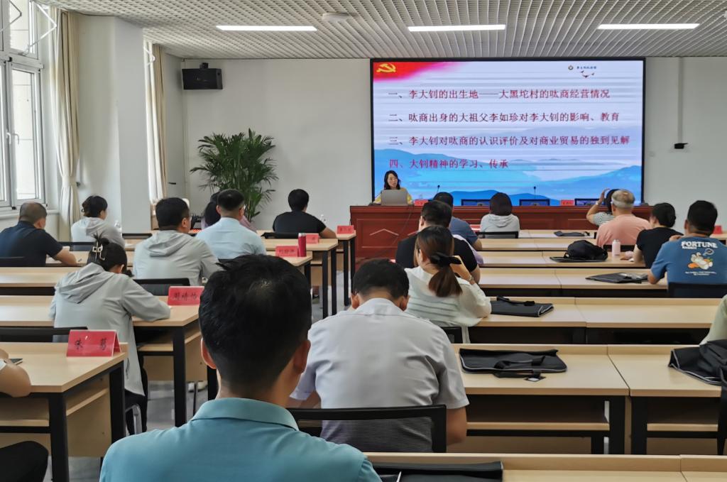 在乐亭县委党校,教师党员通过集中观看《呔商传奇》纪录片,聆听李大钊纪念馆副馆长、高级政工师于海英题为《呔商是培养和造就革命先驱李大钊的血脉根基》的专题讲座,从“李大钊的出生地——大黑坨村的呔商经营情况”“呔商出身的大祖父李如珍对李大钊的影响、教育”“李大钊对呔商的认识评价及对商业贸易的独到见解”“大钊精神的学习、传承”四个部分,了解到呔商的溯源、起步、发展、兴盛,以及他们的经营谋略、家国情怀与爱国文化,也进一步体会到“重义守信、务实坚忍、自强不息、敢为人先”呔商精神的丰富内涵和时代价值。