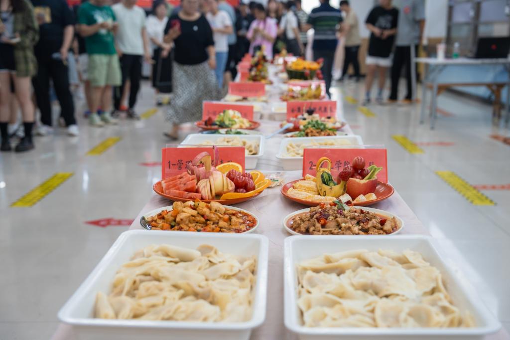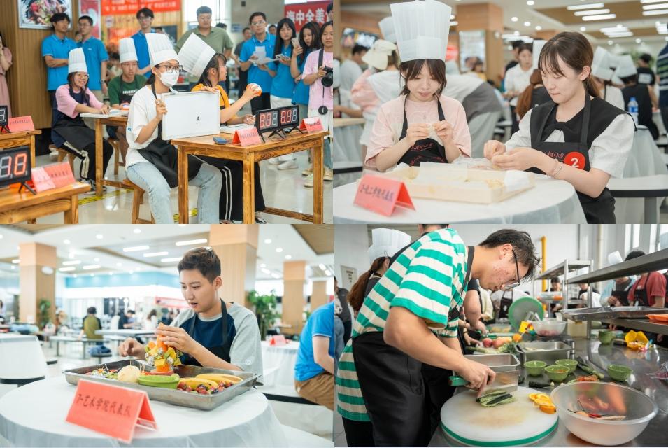 各学院参赛队员在规定时间内相互配合,完成了膳食知识竞答、包饺子、冷食拼盘与特色菜品的制作。水煮肉片、宫保鸡丁、回锅肉、鱼香肉丝、麻辣鸡丝、烧茄子……众多佳肴各具特色、刀工精湛,水果拼盘寓意美好,展现了同学们高超的厨艺与美食创意。