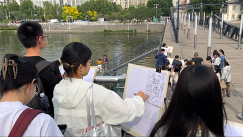 “艺绘津门”活动带领学生走出校门,在旧址前触摸津门红色历史,在海河畔从历史走入现实,在文物古迹中探索民俗渊源,实地实景开展课程思政教育,切实拉近学生与天津第二故乡的距离,感悟城市深厚文化内涵和巨大发展潜力,以画作涵养天津情怀,进而激励学生服务天津发展,扎根津沽大地努力奋斗!