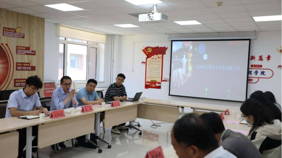 学院党委书记王树春对三家企业相关领导来学院表示欢迎,学院教学副院长张双根介绍了学院专业建设、科研团队的相关科研成果和技术优势等。天津市百利开关设备有限公司和天津市中科信达科技有限公司负责人分别介绍了公司情况并提出了公司产品研发方面的相关需求以及招聘需求。与会教师代表与企业相关负责人针对集成电路这个“卡脖子”问题,积极探索产教融合培养的新模式,促进更多成果在企业落地转化。