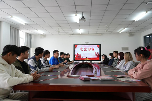 征兵工作专项负责老师向大家介绍了本次会议邀请到的2023年春季退役复学的5名学生,肯定了退役复学大学生将个人追求融入党和国家事业的爱国之心和强国之志。随后,退役大学生安俊熹围绕国防建设意义、大学生参军入伍条件、入伍基本流程和优惠政策等多个方面向同学们作了详细介绍,其他退役复学大学生士兵也与大家分享起自己的军旅故事。艺术学院征兵工作专项负责辅导员老师也鼓励广大青年大学生参军入伍,积极响应国家号召,把个人理想抱负融入强军梦、中国梦,踊跃报名应征入伍,在英雄的军队中成长和锻炼,为祖国国防事业贡献一份自己的力量。