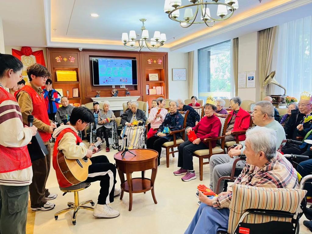 志愿者们精心准备了一台文艺节目,给老人们带去欢声笑语,老人们也分享了自己青年时代的故事,叮嘱同学们要把握大好时光,有所作为。谈到动情之时,老人高歌一曲,鼓励同学们说:“只要你的心还在跳动,还不曾对生活妥协,还没有放弃梦想,你依然是年轻的!加油,中国的新青年们!”活动室洋溢着欢笑与掌声,“过来人”与青年人心灵碰撞,互相陪伴,收获爱与温暖。