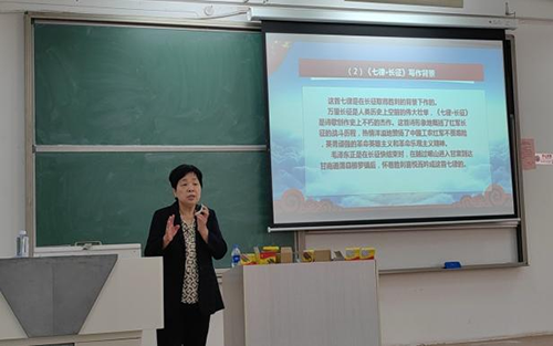 讲座中,马红健老师以“从毛泽东诗词看中国历史—新民主主义革命时期的革命情怀”为题,赏析了《西江月·井冈山》《七律·长征》《沁园春·雪》《七律·人民解放军占领南京》四首革命斗争不同时期的毛泽东诗词,以诗词展开新民主主义革命的历史画卷,带领同学们深刻体会伟大建党精神、长征精神、抗战精神、西柏坡精神,最后对党的二十大精神进行了解读阐释,希望同学们能铭记光辉历史,传承红色基因。