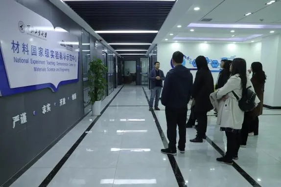 在西北工业大学,西工大材料学院党委副书记罗皎、党委副书记蔡利剑、学院副院长王洪强、碳材料师生融合党支部书记贾瑜军及党员代表一同出席了座谈会。首先西北工业大学党委副书记罗皎对我院来访人员表示热烈欢迎,随后结合学院的宣传片介绍了西北工业大学材料学院的基本情况,第三批党建双创样板支部碳材料师生融合党支部党员代表向大家介绍了该样板支部充分利用师生融合党支部和学科的优势,走党建与科研相融合的道路的建设经验,随后双方围绕支部建设、人才培养等方面进行了深入交流,在学科建设、科研成果转化等方面我院一行人员也向西北工业大学学习了先进经验。最后,在西工大老师的引导下,老师们依次到纳米能源材料研究中心、材料国家级教学示范中心、陕西省材料分析研究中心进行参观学习,促进科研交流,拓展学术视野。