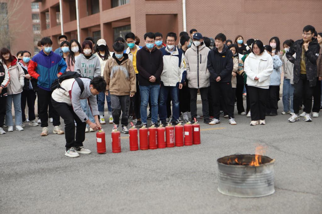 在实战演练开始前,保卫处刘博洋老师讲解了典型的高校火灾真实案例,介绍了消防器具的使用方法。紧接着,保卫处工作人员还现场演示了可控火灾处置方法,并指导师生实际演练了干粉灭火器、喷水枪等的使用,提升了师生对消防器材的使用能力。