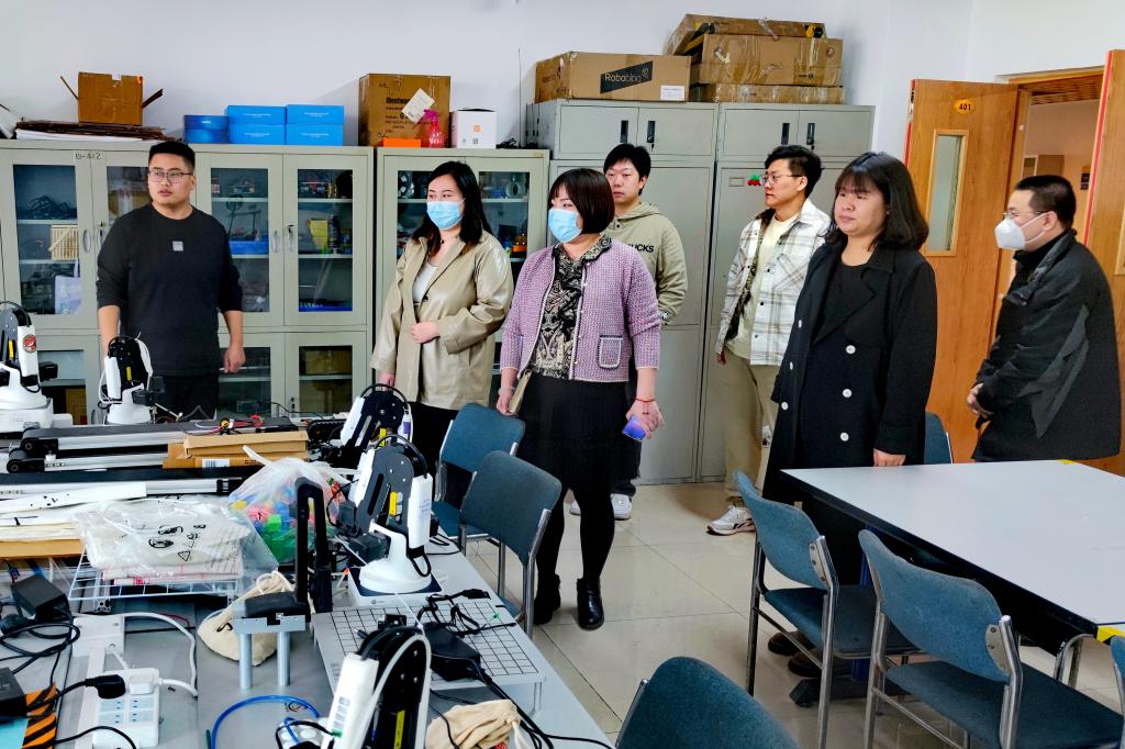 交流中,电气工程与自动化学院党委副书记冯增振老师就学院思想引领、学风建设、特色活动等方面做了详细阐述。院团委负责人就青心服务社的服务站、“扬帆计划”、社区实践计划的开展、“双减”服务课程体系搭建等方面做了介绍。曹申老师、张晓萌老师对学院发展和育人成果给予了充分肯定,并向学院发出诚挚邀请,希望学院师生团队可以依托天津的“希望工程”开展长期的实践活动,为偏远地区的青少年打开“科技创新”的大门。会后,曹申老师和张晓萌老师共同参观了学院修业学堂,“人工智能”“竞速年华”等学生科创及重点科研项目等实验室,实地探讨资源整合内容,真正实现贫困地区青少年沉浸式的科创体验,推动教育的公平、优质和均衡发展。
