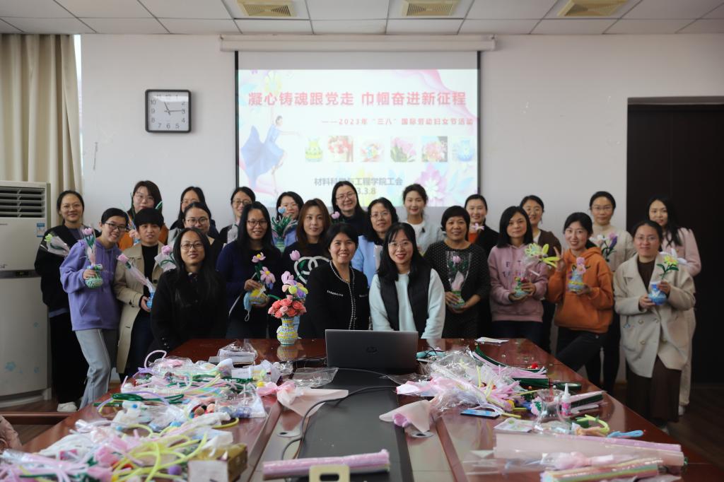为深入学习贯彻党的二十大精神,团结凝聚广大女教职工踔厉奋发、勇毅前行,材料学院工会于3月8日组织开展了以“凝心铸魂跟党走 巾帼奋进新征程”为主题的庆祝“三八”国际妇女节活动,材料科学与工程学院、新能源材料与低碳技术研究院、功能晶体研究院的女教工参加了本次活动。