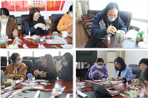 活动前,学院工会为女教工精心准备了马赛克手工DIY花瓶、扭扭棒DIY手工编制花束、手工DIY盆花花束等制作材料,选择彩色花瓶配鲜艳花朵作为此次活动的制作内容。活动中,学院工会工作人员耐心指导,带领女教工互帮互助,在欢声笑语中,大家创意频出,互相启发共同完成了花瓶和花朵的制作。