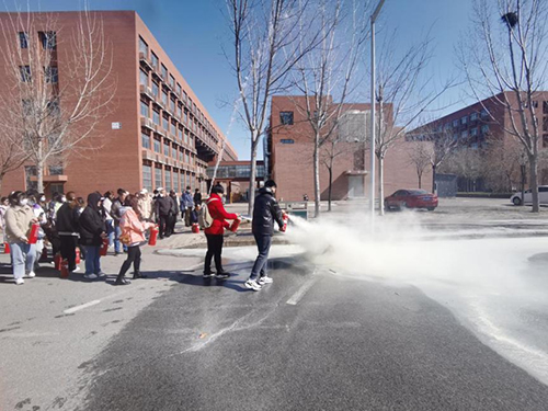 党委安全工作部刘博洋老师详细介绍了校园生活中常见的火灾隐患、灭火方法,灭火器的种类、结构和使用方法等内容,示范如何正确使用干粉灭火器,并指导学生进行实操演练。学院师生现场学习了灭火器、消防水枪等灭火工具的使用方法和注意事项,在工作人员的指导下进行操作,并就使用过程中容易遇到的问题进行了交流。