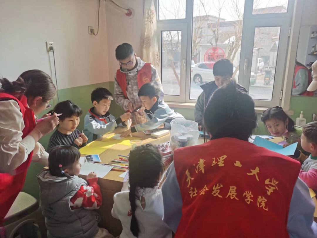 学院志愿者们联动西青区盛阳园的小朋友们,开展“大手牵小手,以‘画’致敬”志愿服务活动。孩子们用手中的画笔从不同层面、不同角度尽情描绘心中的“雷锋精神”。
