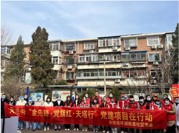 学院青年志愿者协会与河西区环湖南里社区携手举办了“金先锋·党旗红·天塔行”主题党建活动,凝聚党群合力,共同营造共建共治共享社区治理新格局。