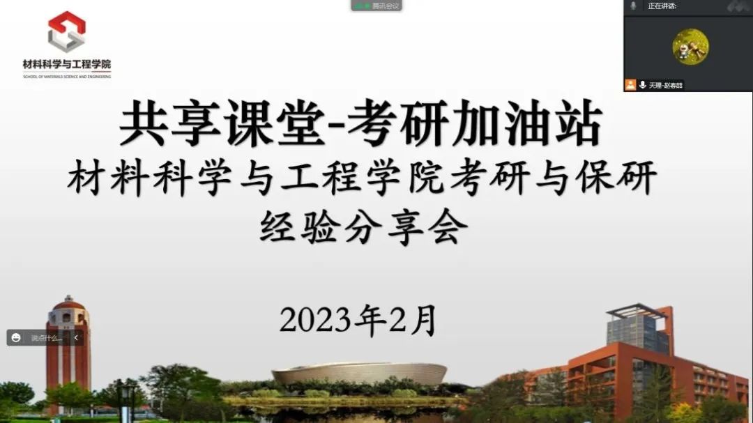材料学院高度重视考研与就业推动工作,此次线上考研与保研经验交流会是在寒假期间调动学生学习积极性的一次有效实践,加深了同学们对于考研的认识,助力同学们有计划地迈向人生更精彩的舞台。