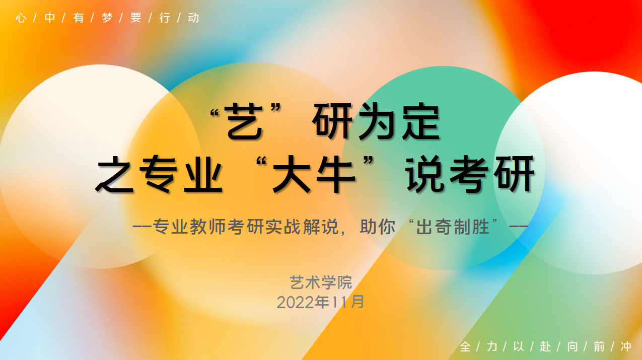 本次考研指导活动为同学们搭建考研信息交流的平台,帮助学生全面了解考研方向,坚定考研目标,解决备考疑惑,掌握相关技巧。艺术学院“艺研为定”考研系列指导讲座将进一步挖掘教师、校友、朋辈力量,分阶段、分群体持续推进,助力学生考研,提升学院人才培养质量。