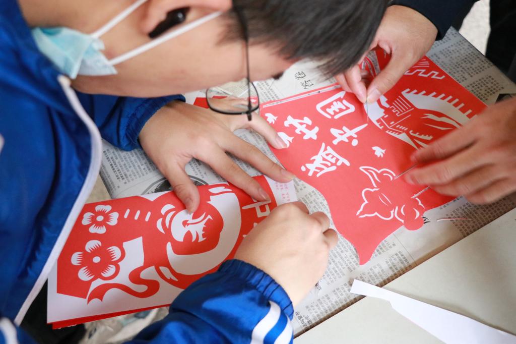 在“礼赞祖国,心随手动”DIY手工制作活动中,同学们巧用刻刀制作红色剪纸,精雕、细刻、剪裁出一幅幅喜庆的红色主题作品;同学们还利用颜色亮丽的奶油胶和精美的爱国挂饰,完成一个个日常使用的小挂件。