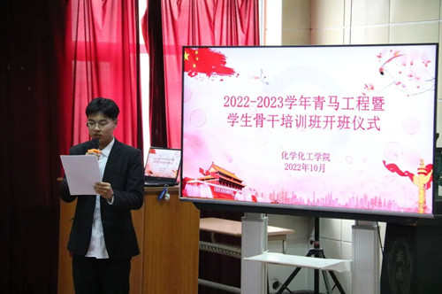 为深入学习贯彻习近平新时代中国特色社会主义思想,加强党对青年学生的政治引领,提升团学骨干的综合素质和服务学生的能力,近日,化学化工学院举办了2022-2023学年第一学期青马工程暨团学骨干培训班开班式。学院有关负责同志、辅导员及90余名学员参加。开班式由学院党委副书记薛鑫主持。