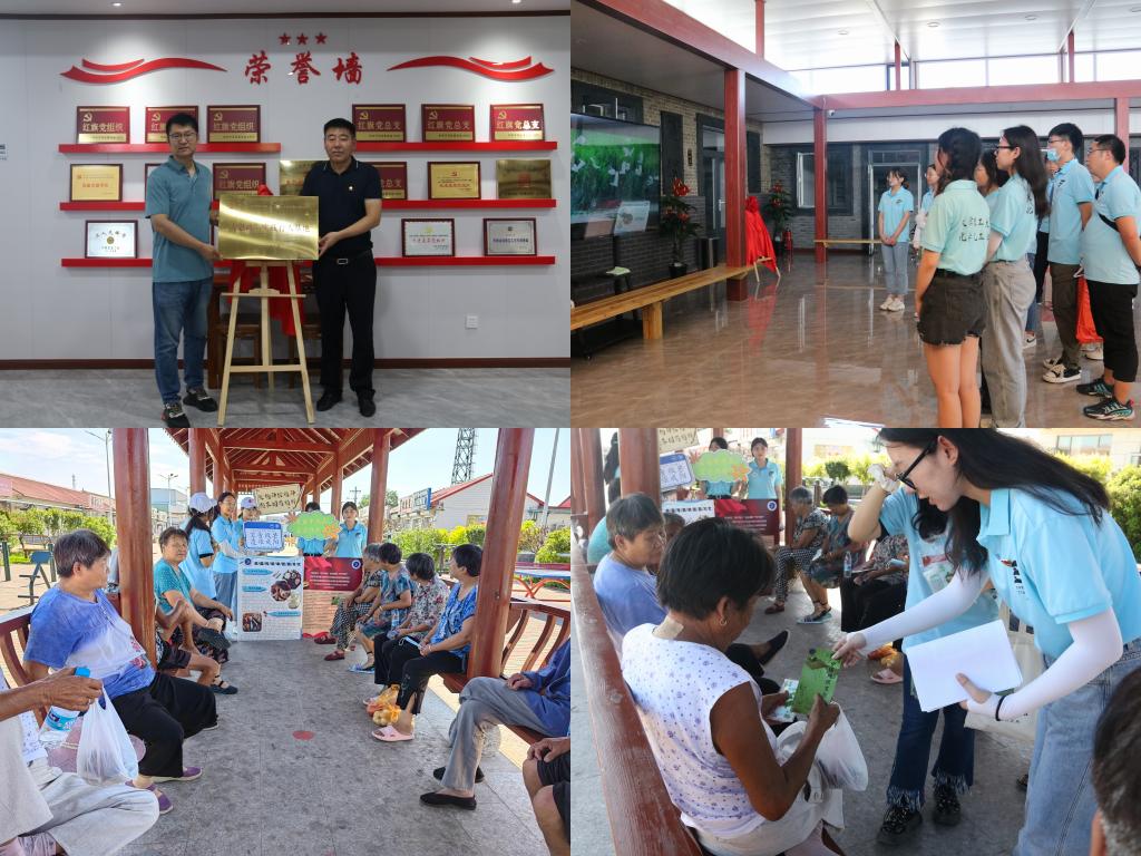 合作共建,助力乡村振兴。在宁河区俵口镇兴家坨村,实践队成员与当地村委会负责同志开展座谈交流,了解村基层党团建设、产业经济、民生建设和七里海湿地生态保护情况,努力强化交流、整合资源,找准与兴家坨村振兴的切入点,把学校资源引入农村。会上,双方围绕思实践育人、互动合作、科技助农、乡村振兴等方面进行深入交流,并举行“大思政实践育人基地”揭牌仪式。