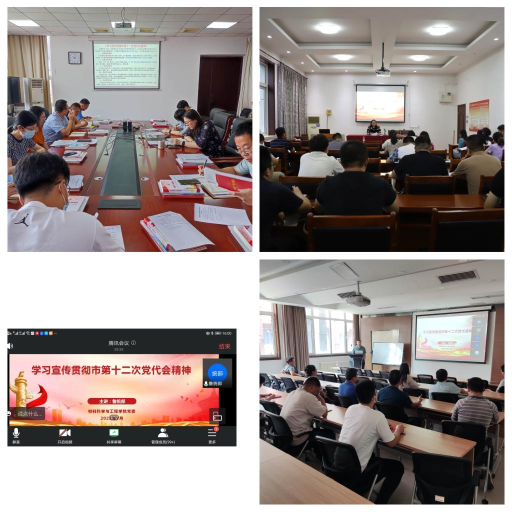为切实把学院党员干部师生思想和行动统一到党代会精神上来,把智慧和力量凝聚到党代会确定的目标任务上来,材料科学与工程学院党委迅速掀起深入学习宣传贯彻市第十二次党代会精神热潮。