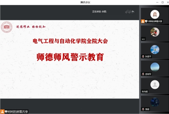 为全面加强教师队伍思想政治工作,持续巩固拓展师德教育成效,不折不扣地将上级有关师德师风建设要求落实落地,6月15日,电气工程与自动化学院召开师德师风警示教育大会,学院全体教师参会。