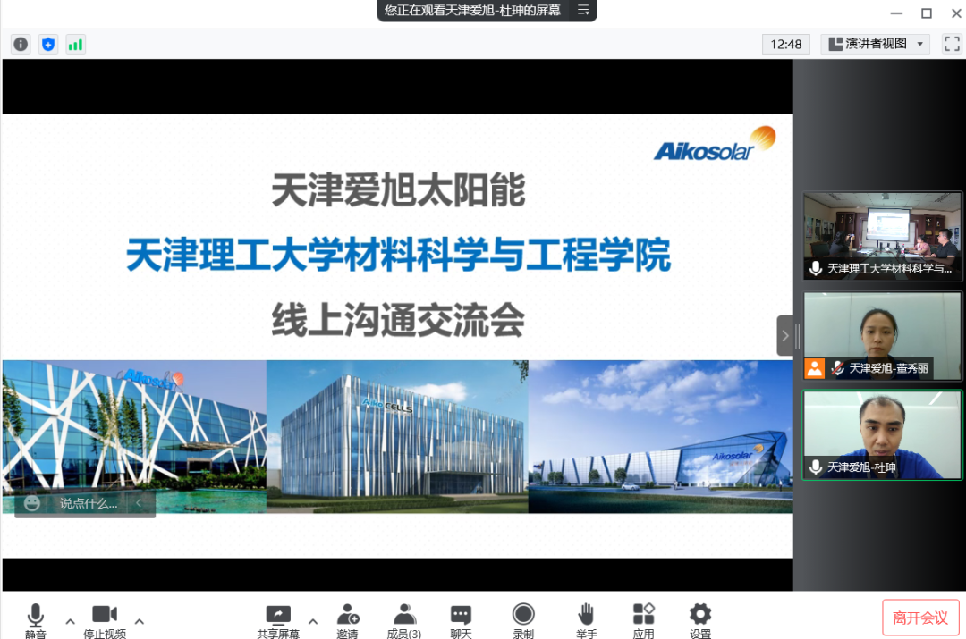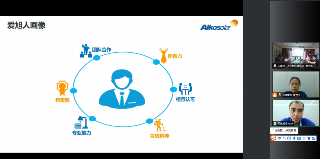 为贯彻落实教育部、教育厅关于高校毕业生就业创业工作的决策部署,学院党委深入落实就业工作“一把手”工程,开展访企拓岗促就业专项行动,全面促进毕业生实现高质量就业。近日,材料科学与工程学院通过视频会议的形式对天津爱旭太阳能科技有限公司进行走访调研,学院相关负责同志参加会议。