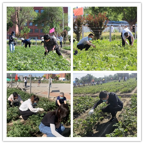 活动中,大家热情高涨、干劲十足,分工合作,配合默契,对土豆植株进行掐尖打顶、清除地垄中的杂草等。大家纷纷表示在劳动中团结协作,既强健了身体又增长了知识。人事处青年干部刘学莎表示,热爱劳动是中华民族的传统美德,今天的活动非常有意义。教务处青年干部丁嘉慧、宋星宇表示,这次活动不仅让我们获得了劳动体验,也对劳动教育有了更深入的理解,希望今后多举办此类活动,让大家在劳动实践中增进交流和学习。”
