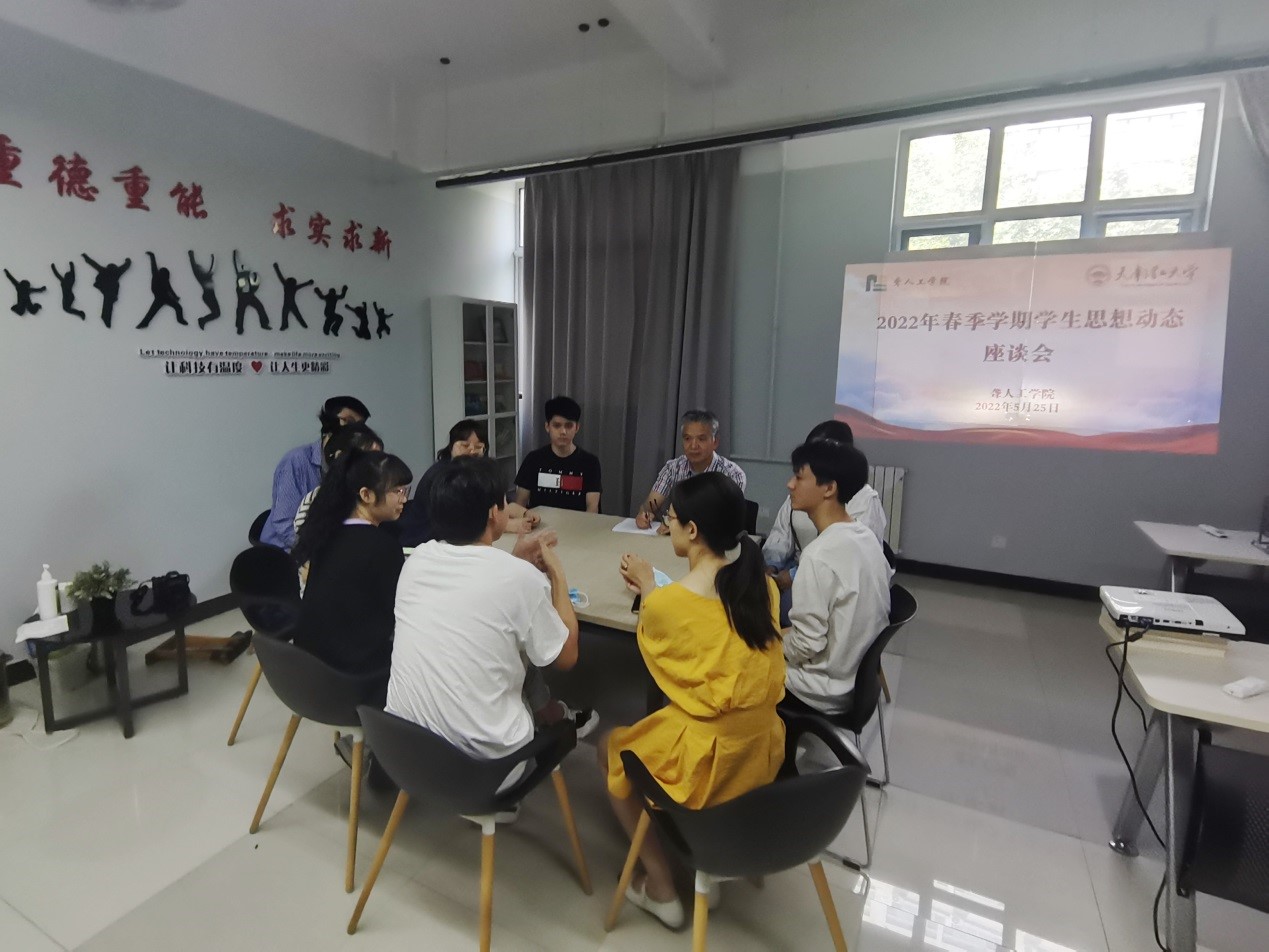 为进一步推动明理家园“一站式”学生社区建设,及时、准确、全面地掌握听障大学生返校后的思想动态,了解同学们普遍关注的问题,增强教学、管理工作的针对性,5月25日,聋人工学院在31号公寓“HIH融合育人”辅导员工作室组织召开2022年春季学期学生思想动态座谈会,学院主要负责同志、教师、辅导员及在校学生代表参加座谈。