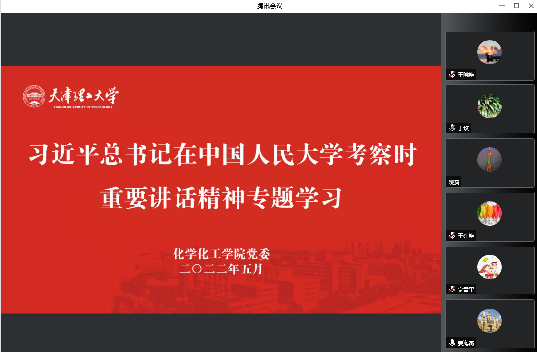 5月6日,化学化工学院召开线上专题会议,学院党委主要负责同志传达了《米兰milan官方网站深入学习贯彻习近平总书记在中国人民大学考察时重要讲话精神及市委常委会会议精神的工作方案》,并结合习近平总书记给北京科技大学老教授重要回信和在南开大学考察时的重要讲话精神,带领与会教师对习近平总书记重要讲话精神进行全面系统学习,号召广大教师把个人事业与国家发展、民族复兴相结合,增强作为新时代教师的崇高使命感,做到“经师”和“人师”相统一,全面落实立德树人根本任务。