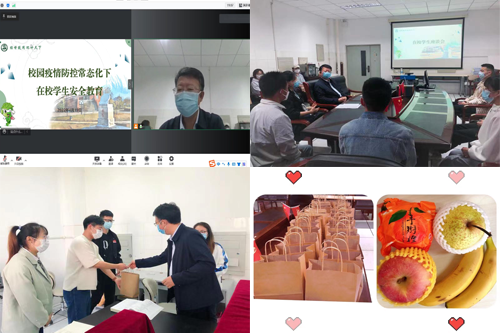 学院党委书记邵邠以线上线下相结合的方式面向全体在校生进行疫情防控教育和安全教育,提醒学生要紧绷思想之弦,务必自觉遵守校园封闭管理期间的防疫要求,不断提高防病意识、自我防护能力与环境消毒技能,以确保在学校健康、安全、高效工作。