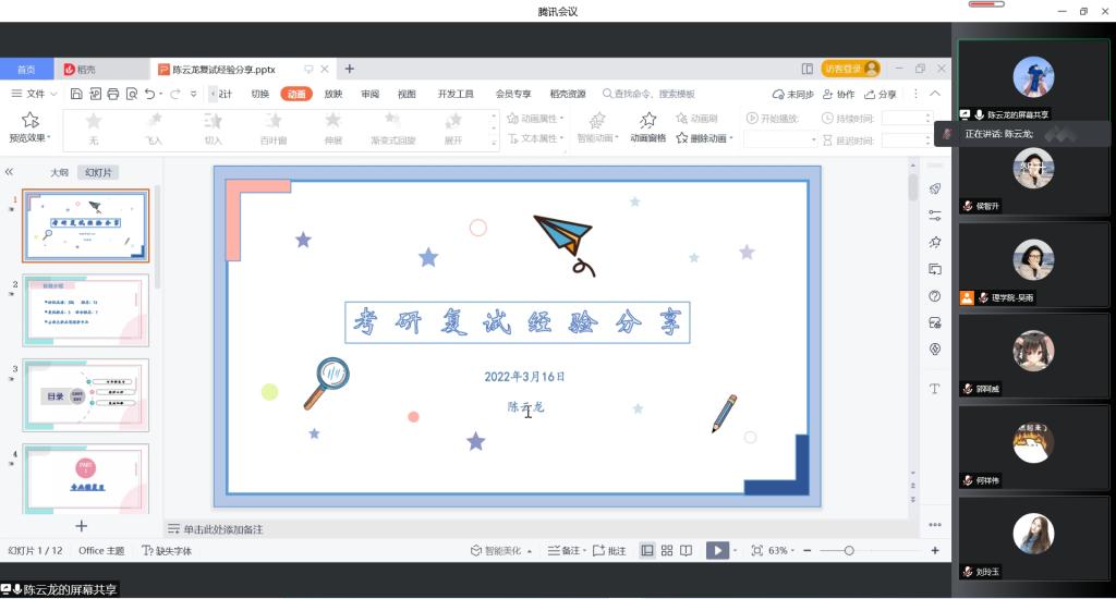 为积极推动理学院2022届毕业生助力服务工作,帮助我院考研学子顺利通过复试、取得研究生入学资格,3月16日晚,理学院开展线上考研复试经验分享沙龙,2021届优秀毕业生代表、2022年理学院考研学生参与了本次活动。