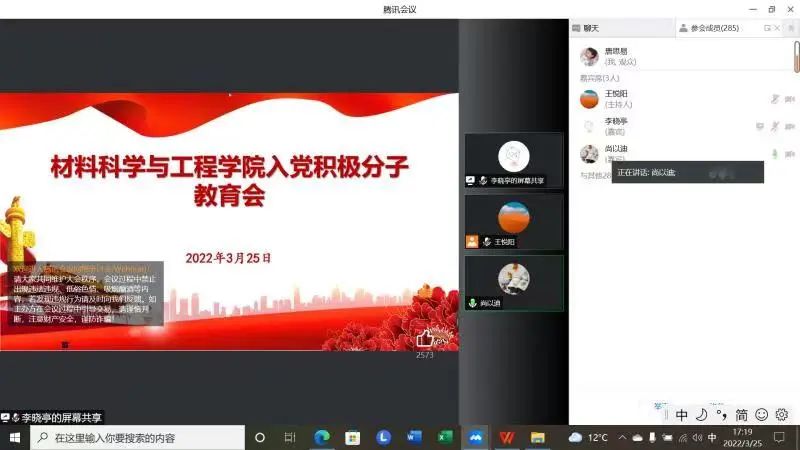 为喜迎建团百年,扎实做好团员发展工作,提高入团积极分子理论水平,增强团组织的战斗力和凝聚力,材料科学与工程学院团委于近日举办2022年入团积极分子线上培训会,学院有关负责人及全体入团积极分子出席本次会议。