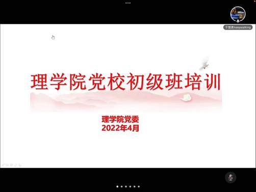为进一步贯彻习近平新时代中国特色社会主义思想,深化“党史”专题教育学习效果,建设高素质学生党员队伍,2022年4月6日,理学院举办党校初级班开班式暨专题培训第一课,院党委书记王茹老师讲授题为“青春献礼二十大,奋斗担当铸忠诚,强国有我新征程”的主题党课。本期入党积极分子及学生党员共计80余人参加本次培训。