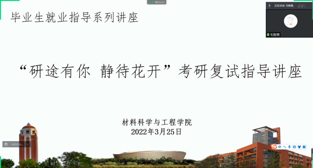 为帮助考研学生进一步了解复试流程,做好院校选择,提振复试信心,3月25日,材料学院召开“材子有约·谈心工坊”第十二期暨“研途有你 静待花开”考研复试指导交流会,学院科研副院长、相关辅导员以及18级考研学生参加会议。