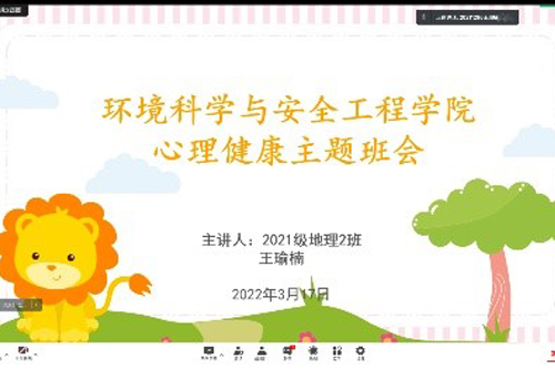 为贯彻落实学校关于学生心理健康教育工作的要求,积极引导学生学习心理健康知识,帮助学生以良好的身心状态开展线上学习,环境科学与安全工程学院组织开展了2022年春季学期心理健康教育第一课。