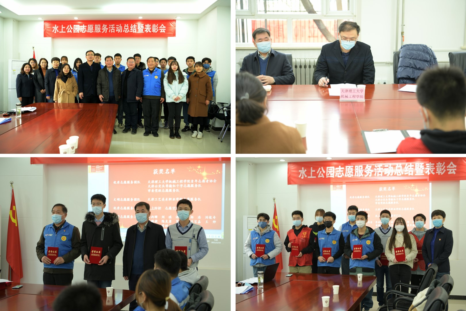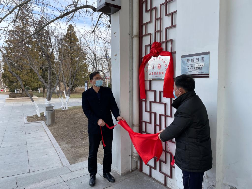 12月16日,机械工程学院有关负责人和优秀志愿者代表受邀来到天津市水上公园,参加2021年度水上公园志愿服务活动年终总结暨表彰仪式,并为志愿服务基揭牌。