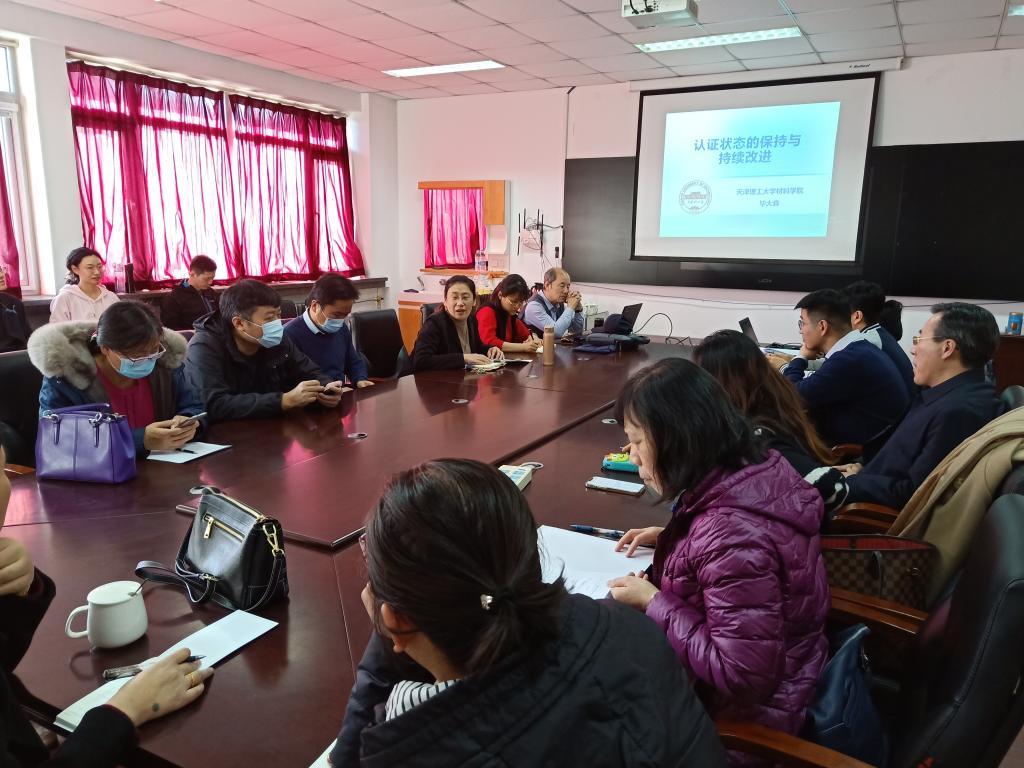 会上,校级教学督导组组长、工程教育专业认证专家毕大森教授以“认证状态的保持与持续改进”为主题开展培训讲座,深入浅出的介绍了工程教育认证办法、工作指南,中期检查报告审核、中期检查入校等相关工作,并针对中期检查报告撰写的注意事项进行了经验交流。随后,机械电子工程专业负责人陈炜老师就机电专业工程认证中期检查工作进行了安排部署。