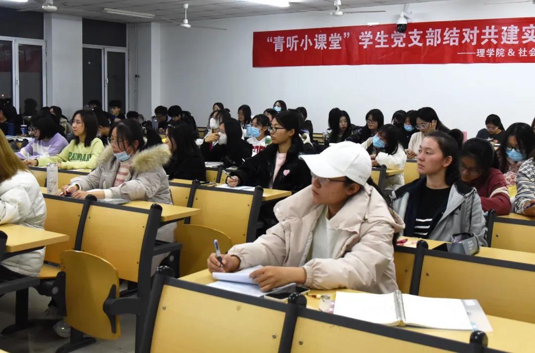 为加强学风建设,使同学们对数学学习、应试方法能够有一个更清晰的认知,获得高效的数学学习方法,12 月 2 日,社会发展学院在 28 号楼举办“ ‘青’ 听小课堂”活动,参加活动的有我院学生和受邀的理学院同学。