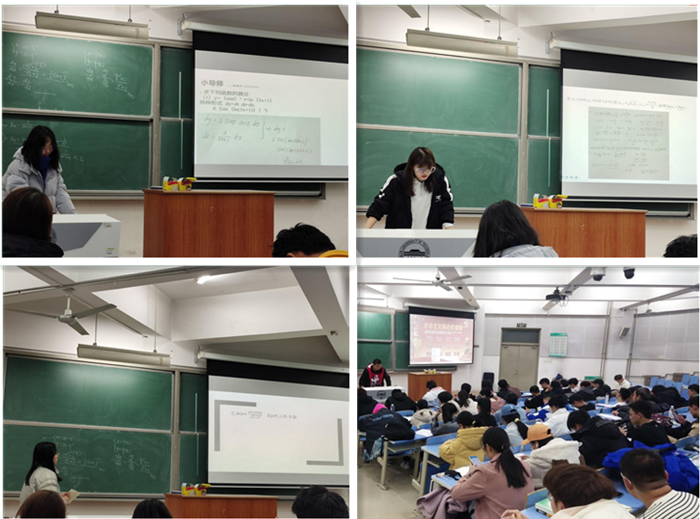 针对当前学习中的难点,结合期中考试中发现的不足和问题,吕林媛、兰凯惠、武靖宇为大一年级新生讲述了导数和极限的相关知识,杨阳为应用物理学专业大一新生讲述高数相关知识。